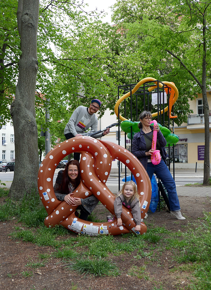 Danke an: Ovis Wende für die wunderbare Beratung in der Phase des Wettbewerbs. Joachim Mackensen für die freundliche Annahme von unzähligen Schwimmtierpaketen. Martin Schönfeld für die freundliche Freigabe des Bildmaterials zur Figur: Schwimmer. Besonderen Dank für Berichterstattung und Bildmaterial an: Sabine Renz, Sebastian Baumüller, Susanne Rosin und Uli Jansen. Holger Ehrig, Thorsten Bunk und Birgit Hampel. An alle Anwohner, die nun schon über mehrere Wochen das Projekt hilfreich unterstützen: Katrin vom Balkon, Angelika K., Joris und Juliane K.